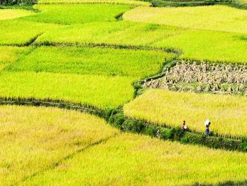9月16日拍攝的貴陽市花溪區(qū)黔陶鄉(xiāng)的稻田。收獲時節(jié),貴陽市花溪區(qū)綿延起伏的稻田呈現(xiàn)出迷人的秋色。由于雨水充足,今年水稻豐收在望。