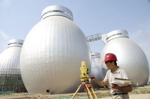 國慶前,小紅門污水處理廠內(nèi)5個銀灰色的卵形污泥消化池將完成外部裝修。市政四公司表示, 消化池將對污水處理過程中產(chǎn)生的污泥進行消化處理,使污泥的衛(wèi)生指標提高,減少細菌及臭氣,避免對環(huán)境造成二次污染。