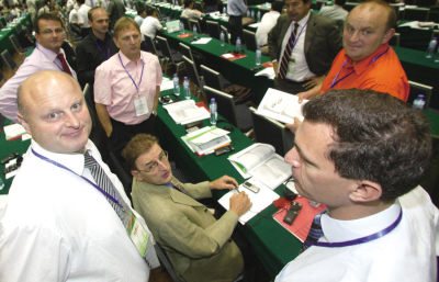 2007年是中國(guó)農(nóng)歷豬年。世界豬肉大會(huì)在中國(guó)召開(kāi)是一次美妙巧合。圖為大會(huì)現(xiàn)場(chǎng)。 | 9月16日至19日,為期4天的“世界肉類(lèi)組織第四屆世界豬肉大會(huì)”在南京舉行,來(lái)自38個(gè)國(guó)家或地區(qū)的肉類(lèi)食品行業(yè)和企業(yè)代表參加本次在亞洲首次召開(kāi)的豬肉行業(yè)世界級(jí)國(guó)際會(huì)議。每?jī)赡暌淮蔚摹笆澜缲i肉大會(huì)”,是全球性的豬肉行業(yè)頂級(jí)盛會(huì)。