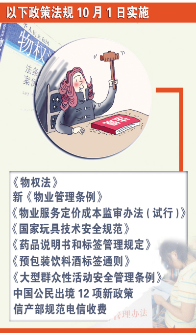 涉及人民群眾切身利益、關(guān)系著國計民生的《中華人民共和國物權(quán)法》自2007年10月1日起施行。