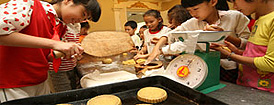 | 農(nóng)村留守兒童和城里孩子一起學做月餅。 |