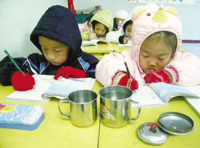每年供暖期之前,哈爾濱市遼河小學全校師生每天在寒冷的教室里上課。為了御寒,所有學生都穿著厚棉衣,一些學生凍得實在受不了就喝熱水。 | 冬季正是我國北方城市的供暖季節(jié)。但是,最近大連這座以浪漫著稱的北方城市里,卻出現(xiàn)了不少要求退出集中供暖的居民。據(jù)《市場報》記者了解,目前這個“拒暖”的群體有逐漸擴大之勢。