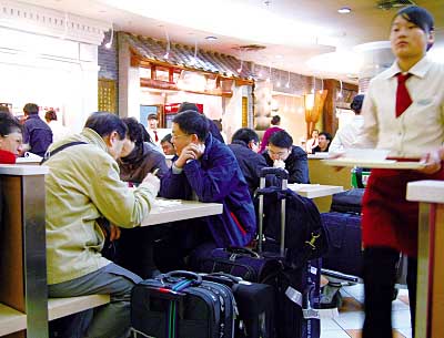 近日,首都機(jī)場航站樓內(nèi)部分餐飲店開始降價(jià),單品最高降價(jià)達(dá)33%。預(yù)計(jì)到11月30日,共248種食品將和市內(nèi)同質(zhì)同價(jià)。圖為機(jī)場航站樓地下一層中華美食城餐廳一角。