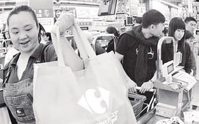 | “環(huán)保購物袋斷貨很長時間了,聽說已經(jīng)去進貨了,什么時候能來就不知道了!北本┪譅柆敵腥f達店的工作人員表示。12月12日,《市場報》記者來到北京沃爾瑪超市萬達店,從進門處到收款臺都沒有看到關(guān)于推廣環(huán)保購物袋的標識,也沒有見到環(huán)保購物袋的出售點。在收款臺,《市場報》記者主動提出想使用環(huán)保購物袋時,收銀員給出了上述答復(fù)。而去年率先推廣環(huán)保購物袋的家樂福北京方圓店此前已不再銷售環(huán)保購物袋。 在超市出口處,《市場報》記者對幾位消費者進行了采訪。在萬達廣場一家公司工作的楊小姐表示,她幾乎每天都會來這里購物,但是每次也只是買些吃的,體積不大,用環(huán)保購物袋既浪費又麻煩,所以她一直都使用超市提供的免費塑料袋。而另一位姓馬的阿姨則表示,每次都買一個環(huán)保袋裝東西太不合適,但是不買就還要帶上以前買的那個,十分不方便,有時候還會忘,干脆就直接用塑料袋好了,反正大家都在用。 隨后,《市場報》記者來到家樂福超市靜安莊店。家樂福超市為推廣環(huán)保理念,從去年12月就開始鼓勵消費者使用環(huán)保購物袋,并專門為消費者開辟了綠色通道,只要是自帶購物袋或者使用環(huán)保購物袋都可以通過綠色通道快速結(jié)賬。 但是,《市場報》記者在現(xiàn)場發(fā)現(xiàn),超市雖然保留了26號到29號綠色通道,但是4個綠色通道基本處于閑置狀態(tài),并沒有收銀員看管。《市場報》記者在綠色通道旁等待了近半個小時,也沒有發(fā)現(xiàn)一位消費者使用環(huán)保購物袋到這里來結(jié)賬。綠色通道基本上成了“無購物通道”,而其他結(jié)賬通道則排起了長隊,收銀員忙得不可開交。一位工作人員說:“超市針對使用環(huán)保購物袋的顧客專門開通了綠色通道,但是效果甚微,顧客買東西一般都選用塑料袋,所以綠色通道也一直閑著。” 據(jù)了解,目前家樂福開通綠色通道面臨兩難的窘境,在消費者購物的高峰期,超市只能把綠色通道暫時關(guān)閉,免得“添堵”;而在開放時又需要配備專門的人員看管,所以目前家樂福環(huán)保購物袋的推廣停滯不前。另外,《市場報》記者向家樂福前臺的服務(wù)員了解到,雖然一個環(huán)保購物袋只需要1元,但是現(xiàn)在已經(jīng)無人問津了。 《市場報》記者隨機詢問幾位顧客知不知道家樂福超市推出的環(huán)保購物袋,他們都說沒有注意到;當問到是否愿意使用環(huán)保購物袋時,一位顧客說:“環(huán)保購物袋使用起來沒有塑料袋方便,生食熟食放在一起也不衛(wèi)生,而且還要收費! 下午3點30分,《市場報》記者來到北京宜家家居,這里是京城首家推行塑料袋收費的賣場。在出口處的收款臺,記者看到,基本上每個顧客都會選擇購買一個塑料袋裝東西,但是也有一些東西較少或購買大件商品的顧客徑直把東西拿在手里就走了;同時,也有個別的顧客是自己帶著購物袋前來的。有趣的是,一位自己攜帶購物袋的阿姨表示,她的這個袋子就是在沃爾瑪購物時買的,當時一共買了兩個,現(xiàn)在出去買菜什么的都拎著,現(xiàn)在又帶到了宜家,挺方便的。工作人員表示,中號黃色塑料袋每個5毛錢,大號塑料袋每個收取1元錢。質(zhì)地厚實一些的那種藍色購物袋,售價3.5元/個,希望通過收費的方式倡導(dǎo)消費者能自己帶著購物袋前來購物。 據(jù)了解,超市在高峰日的客流量是2萬人左右,每人平均使用2到3個塑料袋,每天至少要用掉5萬到6萬個。但是在8月5日集中進行環(huán)保購物袋宣傳活動的沃爾瑪知春路超市,當天也僅賣出100多個。推廣不利、乏人問津,環(huán)保購物袋的推廣看來還任重道遠。 |