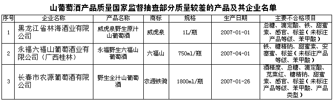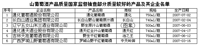 為維護消費者的合法權(quán)益,促進山葡萄酒行業(yè)健康發(fā)展,國家質(zhì)檢總局組織對山葡萄酒產(chǎn)品質(zhì)量進行了國家監(jiān)督抽查。共抽查了吉林、遼寧、黑龍江、廣西等4個省、自治區(qū)50家企業(yè)生產(chǎn)的50種產(chǎn)品(不涉及出口產(chǎn)品),產(chǎn)品實物質(zhì)量合格率為88%。