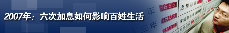 [編者按] 中國人民銀行12月20日宣布,自12月21日起除活期存款利率略有下調(diào)外,上調(diào)各個(gè)檔次人民幣存貸款基準(zhǔn)利率,這是央行今年以來第六次加息。2007年也成為近年央行利率調(diào)整最頻繁的一年。 六次加息后,一年期存貸款利率分別累計(jì)上調(diào)1.62個(gè)百分點(diǎn)和1.35個(gè)百分點(diǎn),公積金貸款利率累計(jì)上調(diào)0.54個(gè)百分點(diǎn)。在這些數(shù)字變化的背后,百姓生活受到怎樣的影響? | |