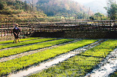 新年伊始,海南五指山區(qū)已經(jīng)進(jìn)入春播大忙季節(jié),當(dāng)?shù)乩杳缱迦罕娬泳o在田間耕作,力爭(zhēng)獲得好收成。圖為1月1日,五指山市水滿村一位村民正在管理秧苗。