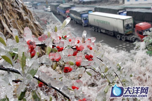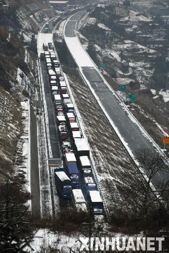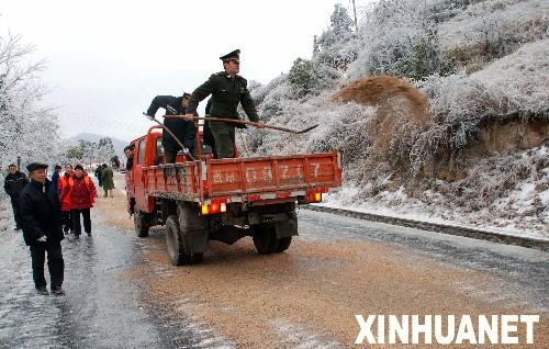 受北方強(qiáng)冷空氣的影響,自本月12日以來,貴州大部分地區(qū)氣溫持續(xù)降低,出現(xiàn)了罕見的凝凍天氣,致使境內(nèi)多條高速公路凝凍,有在外地打工返鄉(xiāng)的民工竟被困路上三日三夜。面對這幾十年不遇的雪災(zāi),當(dāng)?shù)毓饭芾聿块T共在路面上灑下700噸鹽稀釋冰塊。至昨(22)日上午,受困高速公路的車輛有3800輛左右,受困人員為2萬余人。 |