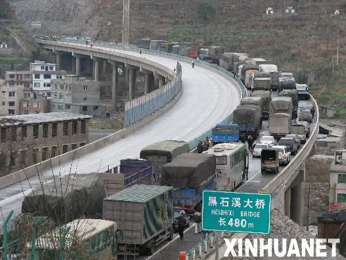 貴州貴新高速受凝凍天氣影響封路,昨(22)日已開始緩慢放行。 邱偉榮