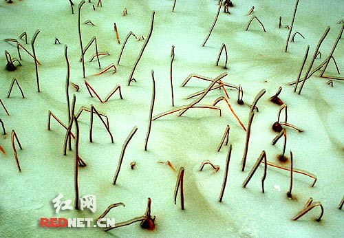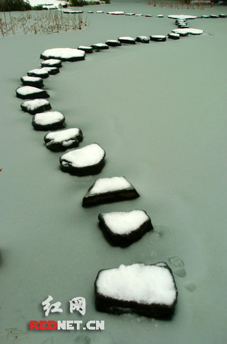 在湖南烈士公園,冰雪這個(gè)天然的雕塑家,讓大地平添許多奇特圖案,或具象,或抽象,鬼斧神工,情態(tài)各異。