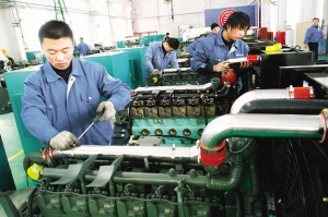 2月10日,在山東濰柴動(dòng)力發(fā)電機(jī)組組裝車間內(nèi),工人們正在緊張組裝發(fā)電機(jī)組。自1月中旬南方地區(qū)出現(xiàn)雪災(zāi)開始,濰柴動(dòng)力集團(tuán)已將300多臺(tái)發(fā)電機(jī)組發(fā)送湖南、廣東、廣西、貴州等受災(zāi)地區(qū),以緩解南方電力供應(yīng)異常緊張的局面。CFP圖片 | |
