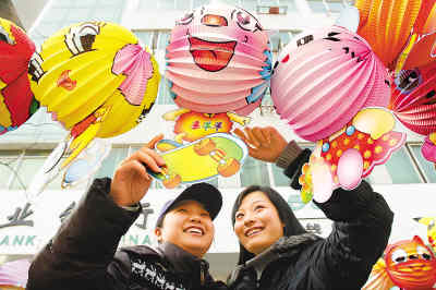 傳統(tǒng)節(jié)日元宵節(jié)來臨之際,安徽省淮北市街頭,五彩繽紛的花燈十分俏銷,市民們紛紛選購花燈迎接元宵節(jié)。圖為二月十八日,兩位姑娘在挑選自己喜愛的卡通燈。