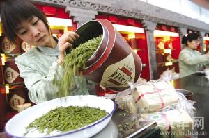 昨天(3月23日),經(jīng)歷雪災的首批明前西湖龍井茶葉運抵京城,并在北京吳裕泰茶莊開售。年初雪災使春茶上市的時間比往年推遲了10多天,但由于出芽前冰雪殺死了許多害蟲和細菌,今年的春茶質(zhì)量比往年要好。首批明前茶售價和去年持平為每斤5600元。