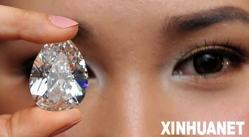 當(dāng)日,香港蘇富比拍賣行展示一顆重達(dá)72.22克拉的白鉆,其形狀呈梨形,凈度為最高的D級(jí),屬絕佳罕見的品種。這顆鉆石將于4月10日在香港會(huì)議展覽中心拍賣。