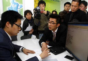 雖然上海移動的服務(wù)電話告之多家移動營業(yè)廳都能辦理TD業(yè)務(wù),但是記者實際去詢問幾家營業(yè)廳卻被告之暫時還沒有開展,可能要過些時間。但是上海兩家TD展示廳昨天均對外營業(yè)。