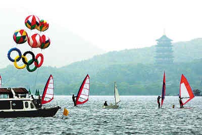 4月8日,“百舸競(jìng)春,西湖船會(huì)”在杭州西湖舉行。上百只各式西湖游船沿著桃紅柳綠的西湖岸邊一路巡游,其間還進(jìn)行了賽艇、皮劃艇競(jìng)技表演等多項(xiàng)活動(dòng)。圖為專業(yè)賽艇、皮劃艇在進(jìn)行競(jìng)技表演。