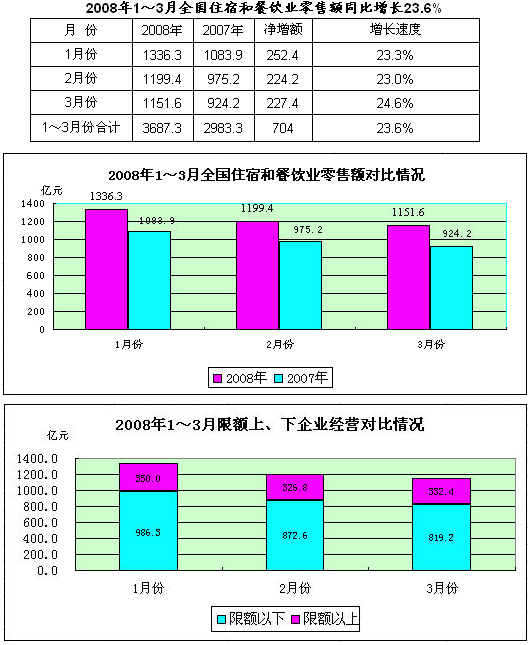 附:2008年1-3月全國住宿與餐飲業(yè)零售額對比情況表