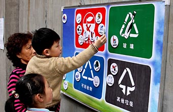 日前,上海開(kāi)始在居民區(qū)推行新的生活垃圾分類(lèi)管理辦法,紅、綠、藍(lán)、黑四色嶄新的垃圾桶出現(xiàn)在居民區(qū)中,引導(dǎo)居民主動(dòng)對(duì)垃圾篩選分類(lèi),生活垃圾將不再是“放錯(cuò)地方的資源”。 據(jù)上海市容環(huán)衛(wèi)部門(mén)介紹,除了大件垃圾和裝修垃圾以外,上海新的垃圾分類(lèi)方式把居民區(qū)垃圾分為:玻璃、有害垃圾、可回收物、其他垃圾四類(lèi),對(duì)應(yīng)的垃圾桶顏色分別為綠色、紅色、藍(lán)色和黑色。 4月19日起,上海在100個(gè)居民小區(qū)率先推行生活垃圾四色新分類(lèi)模式,下半年四色垃圾桶還將推廣至全上海1000個(gè)封閉式居住區(qū)。 除封閉式居住區(qū)外的其他兩大區(qū)域,將實(shí)施不同的分類(lèi)方式:年內(nèi),景觀道路、主要旅游景點(diǎn)等公共場(chǎng)所將全面實(shí)施生活垃圾二分類(lèi),即分為可回收物、其他垃圾;1000家政府機(jī)關(guān)、學(xué)校、大中型企事業(yè)單位等將實(shí)施生活垃圾三分類(lèi),即可回收物、有害垃圾和其他垃圾。上海市容環(huán)衛(wèi)部門(mén)負(fù)責(zé)人介紹,上海計(jì)劃五年內(nèi)形成生活垃圾分類(lèi)收集、分類(lèi)運(yùn)輸、分類(lèi)處置全過(guò)程暢通、有序的物流系統(tǒng),實(shí)現(xiàn)全程管理。垃圾分類(lèi)作為發(fā)展循環(huán)經(jīng)濟(jì)、落實(shí)節(jié)能減排要求的一項(xiàng)重要措施,不僅是對(duì)資源的一種充分利用,更是綠色奧運(yùn)的一種體現(xiàn)。 上海一位市民程阿姨說(shuō):“奧運(yùn)快到了,我們也要從自身做起,要改變以往生活中的不良習(xí)慣,真正讓綠色融入生活中去!