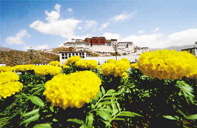 4月26日,西藏自治區(qū)拉薩市布達(dá)拉宮前花團(tuán)錦簇。拉薩市園林部門在布達(dá)拉宮廣場及其周圍擺設(shè)或種植成千上萬株鮮花,迎接北京奧運會倒計時100天和“五一”勞動節(jié)。