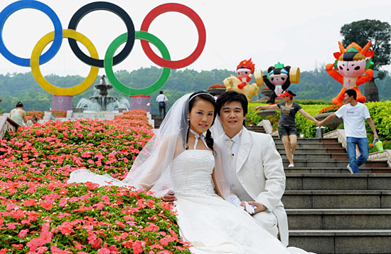 廣州:新人拍攝奧運婚紗照