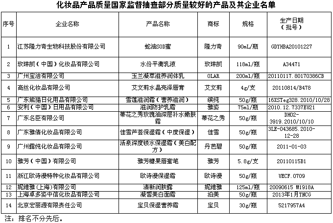 為了維護(hù)消費(fèi)者的合法權(quán)益,促進(jìn)化妝品行業(yè)健康發(fā)展,國家質(zhì)檢總局組織對化妝品產(chǎn)品質(zhì)量進(jìn)行了國家監(jiān)督抽查,共抽查了北京、上海、浙江、江蘇、廣東、福建等6個(gè)省、直轄市62家企業(yè)生產(chǎn)的80種產(chǎn)品(不涉及出口產(chǎn)品),產(chǎn)品實(shí)物質(zhì)量抽樣合格率為99.7%。