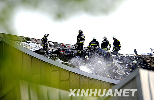5月20日,消防人員在德國柏林愛樂音樂廳頂部滅火。