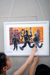當(dāng)日,安徽省蕪湖市戈江區(qū)馬塘小學(xué)在市書(shū)畫(huà)院舉行“迎奧運(yùn)”少兒版畫(huà)展,展出該校學(xué)生創(chuàng)作的120幅版畫(huà)作品。