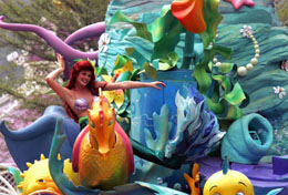 “美人魚”在香港迪斯尼樂園的大巡游上表演。本報(bào)記者:薛永興