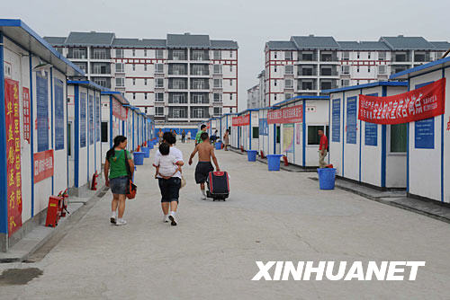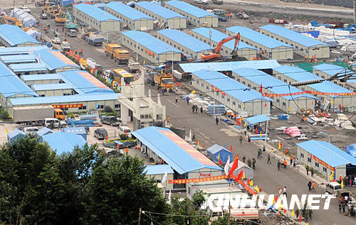 6月12日,由四川省成都市紅十字會援建的“幸福家園”一期工程――一萬平米賑災(zāi)安置板房在都江堰建成,首批1400多名受災(zāi)群眾正式入住!靶腋<覉@”二期五萬平米板房正在緊張建設(shè)中。