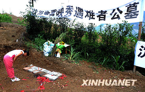 | 6月12日,一名災(zāi)區(qū)女子在汶川映秀鎮(zhèn)遇難者公墓祭掃。 新華社記者 李尕