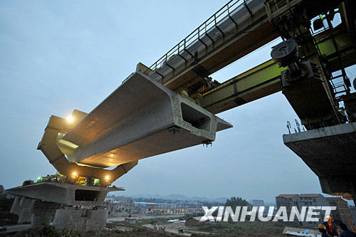 當(dāng)日,武廣客運專線淦河特大橋合龍。正在建設(shè)中的武廣客運專線是我國鐵路高速客運網(wǎng)主骨架之一,正線全長968.446公里,投資估算為1080億元,是我國目前里程最長、技術(shù)標(biāo)準(zhǔn)最高、投資最大的鐵路客運專線,預(yù)計2010年底全線建成通車。位于湖北境內(nèi)的淦河特大橋全長3.405公里,是全線的重難點工程之一。