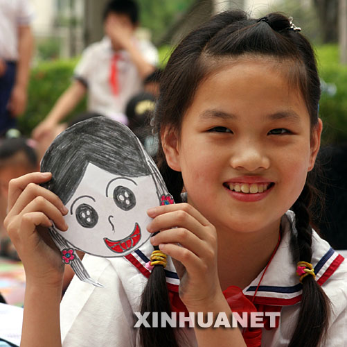 6月22日,一名學(xué)生展示自己畫的“笑臉”。
