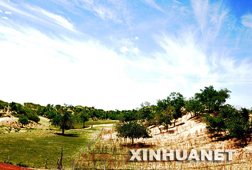 錫林郭勒正藍旗經(jīng)過治理的渾善達克沙地已經(jīng)被郁郁蔥蔥的綠色覆蓋(攝于6月22日)。 |