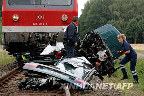 當(dāng)天,在德國漢諾威附近發(fā)生一起汽車與火車相撞的事故。警察稱,這起事故造成4人死亡和1人重傷。 新華社/法新