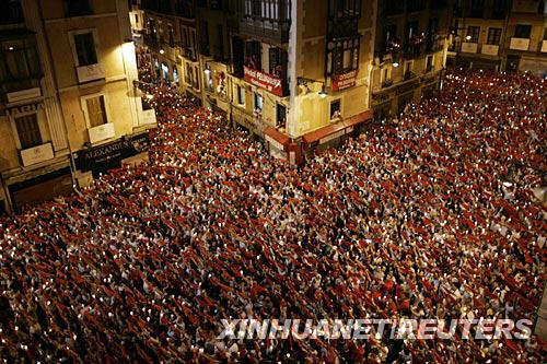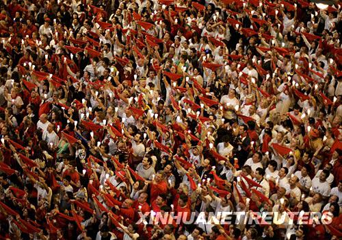 7月15日凌晨,在西班牙北部城市潘普洛納,節(jié)日狂歡者手舉蠟燭和紅絲巾參加圣·費(fèi)爾明節(jié)的閉幕活動(dòng)。新華社/路透 | |