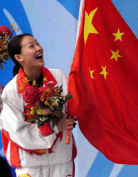 1992年的巴塞羅那奧運會上,年僅14歲的伏明霞奪得了10米跳臺冠軍,成為了奧運史上最年輕的冠軍,隨后她的照片被登在美國《時代》周刊的封面上,這也創(chuàng)下了中國運動員之先河;此前一年,她還贏得了第六屆世界錦標賽跳臺桂冠,成為最年輕的世界冠軍并被載入《吉尼斯世界紀錄大全》;1996在亞特蘭大奧運會上,她奪得臺板雙料冠軍,成為繼高敏奪得漢城和巴塞羅那奧運會3米板冠軍之后,蟬聯(lián)跳水冠軍的第二人,這又是一個世界紀錄。