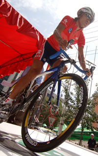 參加第七屆環(huán)青海湖公路自行車賽的20支車隊中,有不少車手將代表各自國家和地區(qū)參加北京奧運會。有“亞洲車王”之稱的中國香港隊運動員黃金寶就是其中之一。