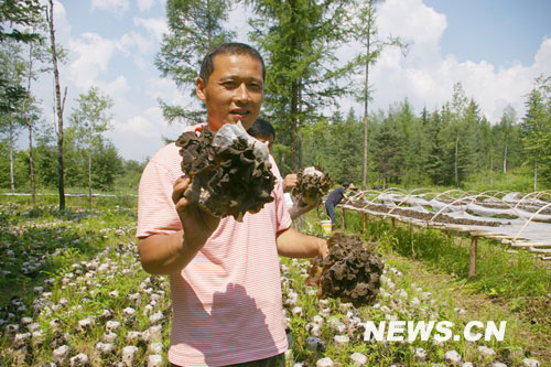 7月16日,伊春市紅星區(qū)農(nóng)民在展示農(nóng)產(chǎn)品。