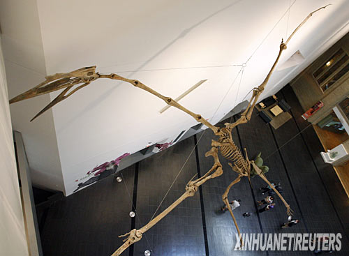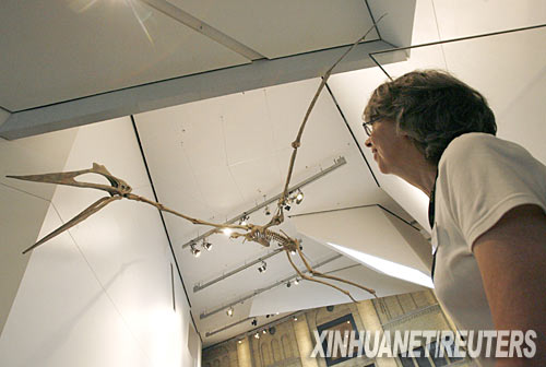 7月17日,世界上最大的風(fēng)神翼龍化石骨架在加拿大多倫多市的安大略皇家博物館內(nèi)展出。這具骨架體長6米,翼展達(dá)12米。風(fēng)神翼龍是地球生命史上最大的飛行動(dòng)物之一。 新華社/路透