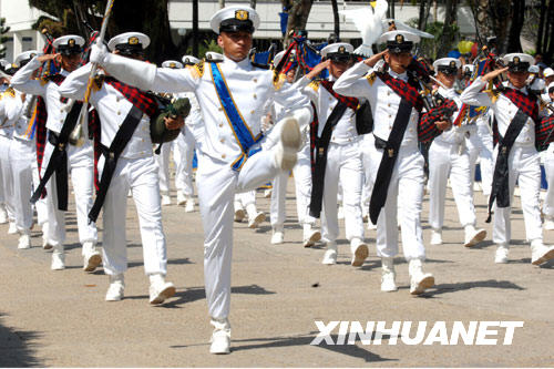 7月20日,在哥倫比亞萊蒂西亞,哥三軍儀仗隊接受檢閱。當(dāng)天,哥倫比亞舉行閱兵等活動慶祝獨立198周年。哥總統(tǒng)烏里韋主持閱兵儀式,巴西總統(tǒng)盧拉、秘魯總統(tǒng)加西亞應(yīng)邀出席。