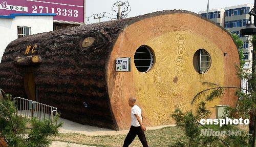 7月21日,天津新建成的長虹生態(tài)園內(nèi),造型酷似大樹的藝術(shù)公廁。據(jù)介紹,該“木頭”公所直徑5米、長10米,占地面積近100平方米,內(nèi)部為磚混結(jié)構(gòu),由人工雕繪制成。