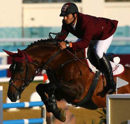2006年12月12日,卡塔爾選手魯邁希在卡塔爾首都多哈舉行的第15屆亞運(yùn)會馬術(shù)障礙賽中獲得金牌。 新華社發(fā)(資料照片)