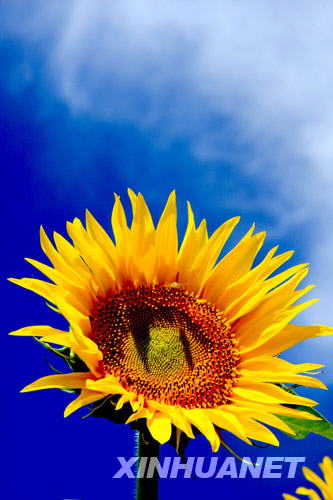 7月22日在新疆阿勒泰拍攝的盛開的向日葵。7月中旬以來,阿勒泰市周邊的10萬畝向日葵競相綻放,景色迷人,吸引了大量游客前來觀賞,也吸引了許多養(yǎng)蜂人前來放蜂、采蜜。