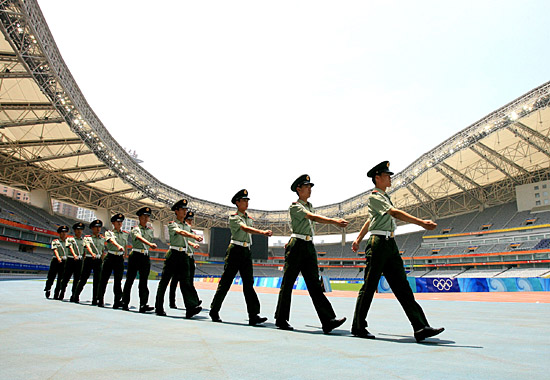 武警上?傟犚恢ш牴俦壳耙讶孢M駐北京奧運會上海賽區(qū)的比賽場館——上海體育場,對比賽場館和周邊相關(guān)區(qū)域?qū)嵭蟹忾]式管理。