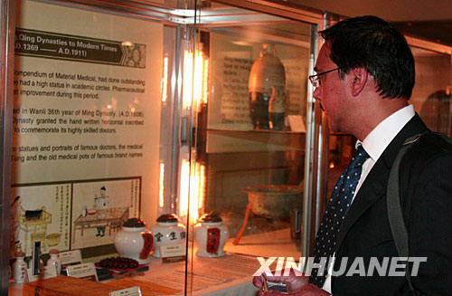 7月28日,在英國(guó)倫敦皇家醫(yī)學(xué)會(huì),一名觀眾在英國(guó)中醫(yī)藥周活動(dòng)上參觀中醫(yī)藥實(shí)物展。英國(guó)中醫(yī)藥周7月27日在倫敦開(kāi)幕。在隨后的一周時(shí)間內(nèi),中英醫(yī)學(xué)界人士將探討中醫(yī)藥在英國(guó)的發(fā)展前景,特別是確立中醫(yī)藥在英國(guó)的合法地位等問(wèn)題。英國(guó)中醫(yī)藥周還將舉辦展覽,幫助觀眾了解中醫(yī)藥的歷史和現(xiàn)狀。 |