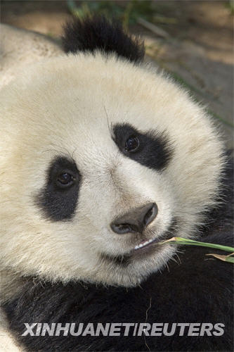8月1日,在美國圣迭戈動物園,大熊貓“珍珍”在吃竹子!罢湔洹笔2007年8月3日在這家動物園由大熊貓“白云”產(chǎn)下的,現(xiàn)在已有約40磅(約合18公斤)重,能夠進(jìn)食竹子等固體食物!罢湔洹笔窃谑サ陝游飯@誕生的第四只大熊貓。 新華社/路透