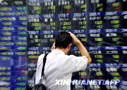 8月4日,在日本首都東京,一名男子駐足觀看股票價(jià)格顯示牌。受日本企業(yè)預(yù)期收益下降及紐約股市下跌等因素的影響,當(dāng)日,東京股市日經(jīng)股指比前一個(gè)交易日下跌161.41點(diǎn),收于12933.18點(diǎn),跌幅為1.23%。 新華社/法新