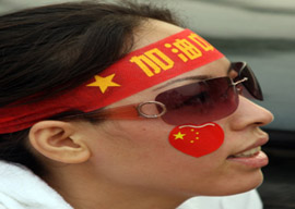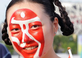 北京,隨處可見印有“祥云”圖案、用中英文寫著“同一個(gè)世界,同一個(gè)夢想”、蓋著“中國印”的旗幟、橫幅,處處回蕩著《北京歡迎你》《Forever friends(永遠(yuǎn)的朋友)》的歌聲。