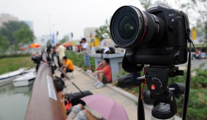 8月8日,眾多攝影記者提前在國(guó)家體育場(chǎng)——“鳥(niǎo)巢”南側(cè)架好攝影器材,為晚上的開(kāi)幕式做準(zhǔn)備。此刻距北京奧運(yùn)會(huì)開(kāi)幕還有不到6個(gè)小時(shí)。