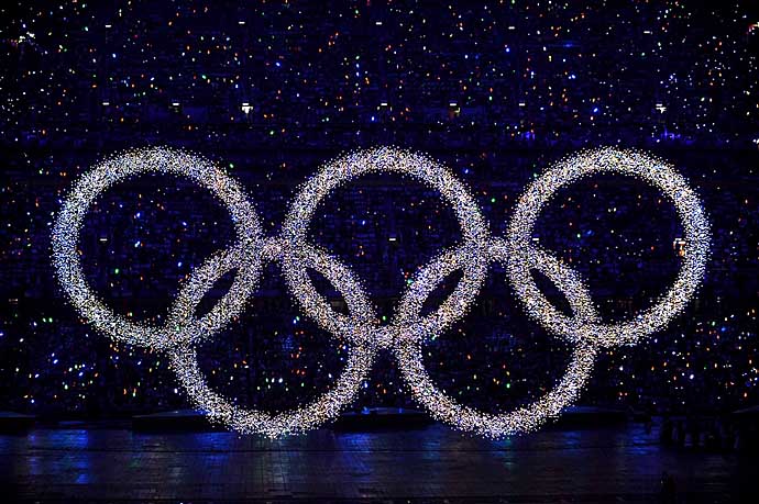 8月8日晚8時,第29屆夏季奧林匹克運動會在國家體育場——“鳥巢”隆重開幕。這是開幕式上閃閃發(fā)光的夢幻“五環(huán)”。